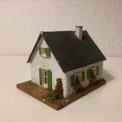 Vintage retro hus hytte minihus miniby bjerghytte kitch bjælkehytte sommerhus kolonihavehus