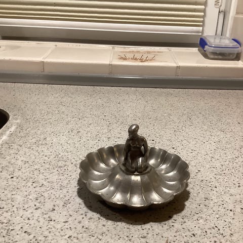 Fint Tin askebære fra Svensk tre kroner, d. 13cm.