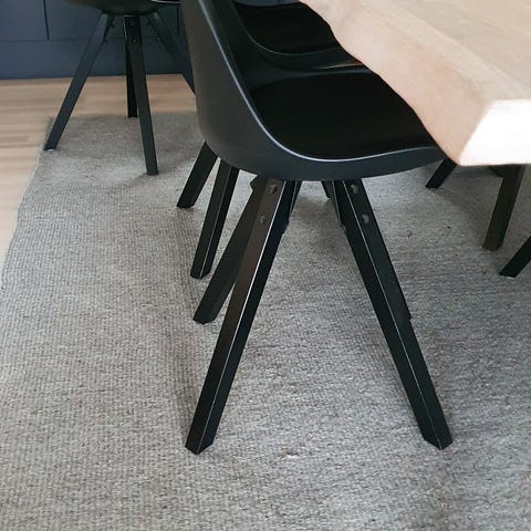 Vi har 4 sorte spisebordsstole i læder som kan dreje rundt. Sædet er helt tilpas blødt, så man sidder super godt. De er næsten som nye og har ingen skræmmer. De er lidt beskidte få steder nu, men hvis der kommer interesse gør vi dem selvfølgelig rene.