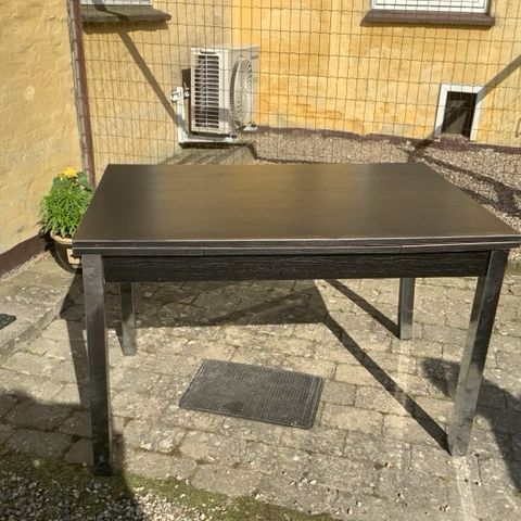 Massivt egetræsbord med 2 tillægsplader, hvidpigmenteret.