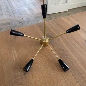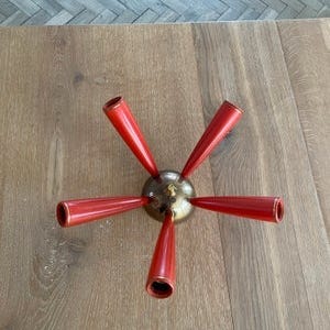 Gammel messing Sputnik lampe fra 1960'erne med 7 røde fatninger