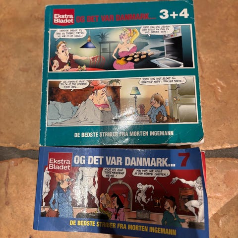 Fire bøger med alle striber fra Ekstra Bladet Morten Ingemann fantastiske tegninger de er sjove og mange gange langt over stregen fantastisk toiletlæsning eller før man går i seng. mega god humor