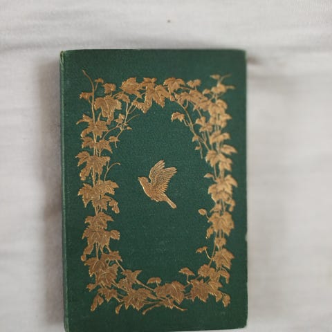 FORSIDE ER DEKORERET MED BLADDEKORATION OG FUGL, INDRAMMET MED LINIER. ALT I GULD.