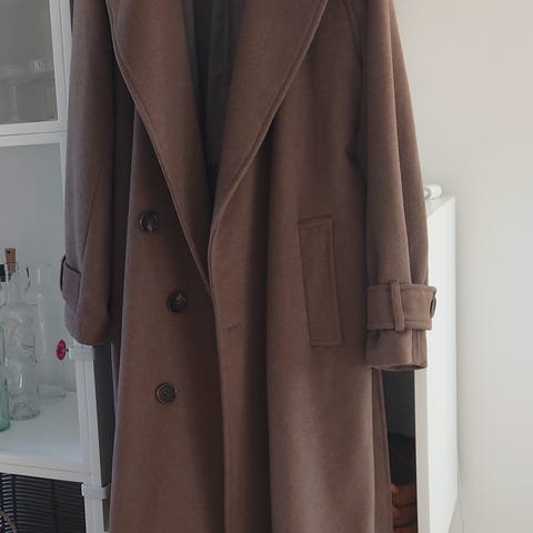 38 % uld, 32% akryl, 30% polyester. Stort set som ny.
