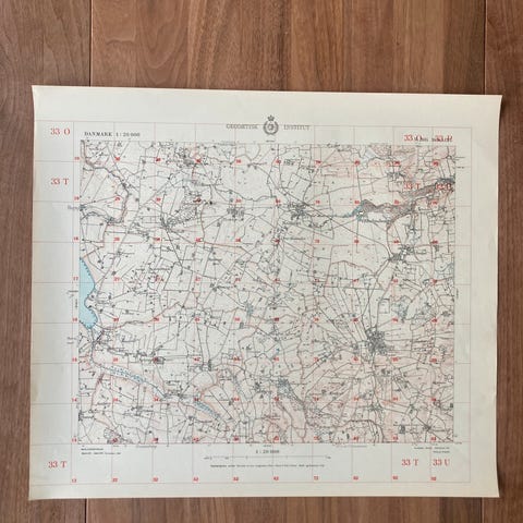 Vægkort fra 1962: Tørring og omegn (perfekt stand)