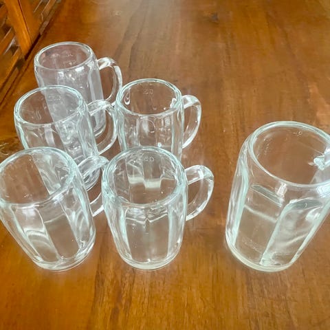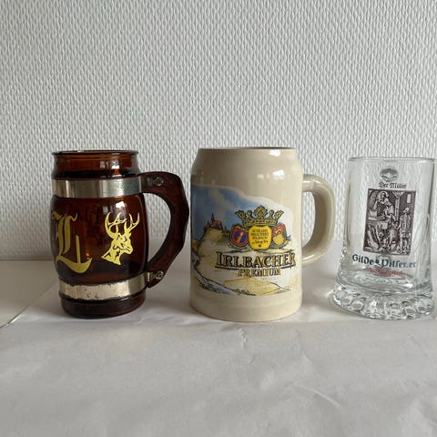 1 liter ølkrus fra faxe Festival 90 5stk.for 300 kr. Vi