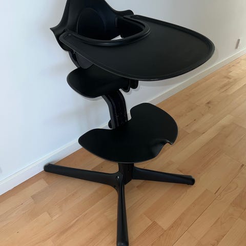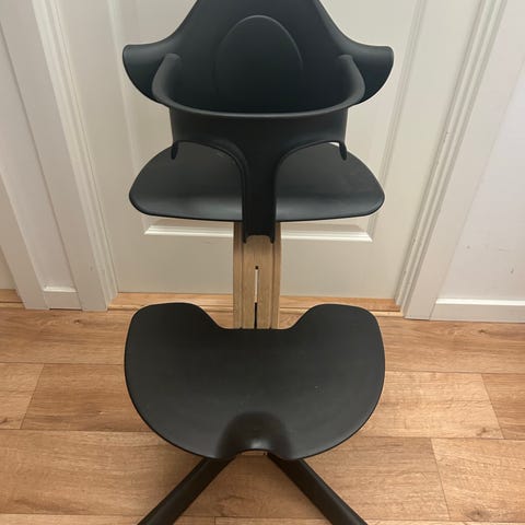 Sort stokke Nomi højstol, i meget pæn stand og kommer med bøjle og newborn set.