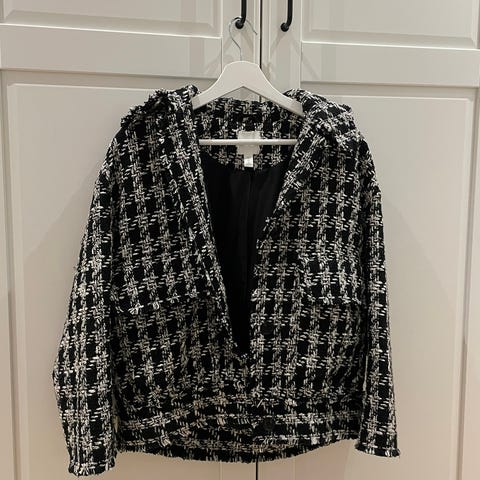 Jakke, str. 44, Divided H&M, Ternet, sort, hvid grå, Polyester, God men brugt, Pæn og velholdt lang jakke.
