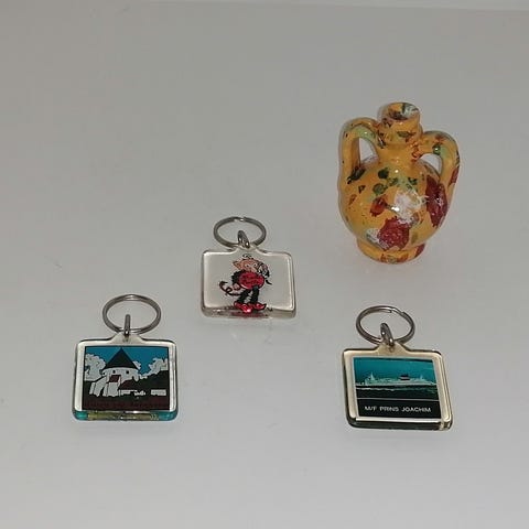 4 nøgleringe fra 70’erne til først i 80’erne. Turistmotiver: Færøerne, Frederiksborg slot, Munkholmbroen og Gaustablikk, Norge. Sælges samlet - prisen er for alle fire.
