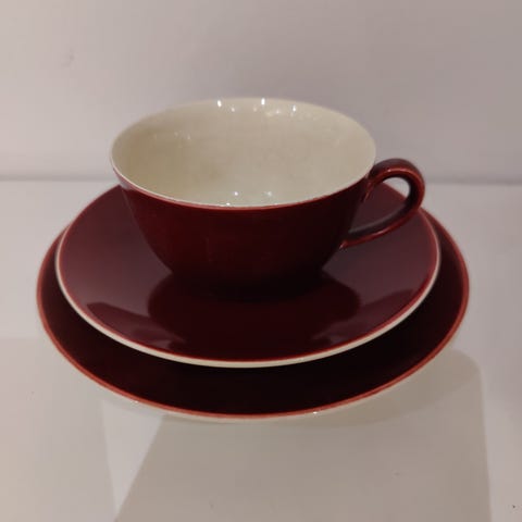 14 stk. bordeaux espresso kopper, komplette med underkopper.