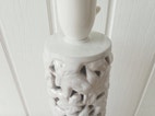 Keramik, Keramik bordlampe, Her en flot stor hvid bordlampe med fin dekoration af blomster med gennemgående åbninger.