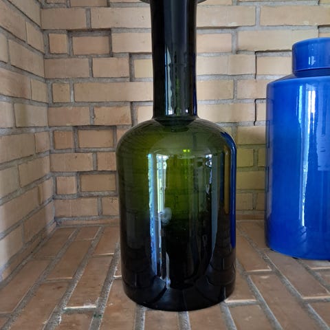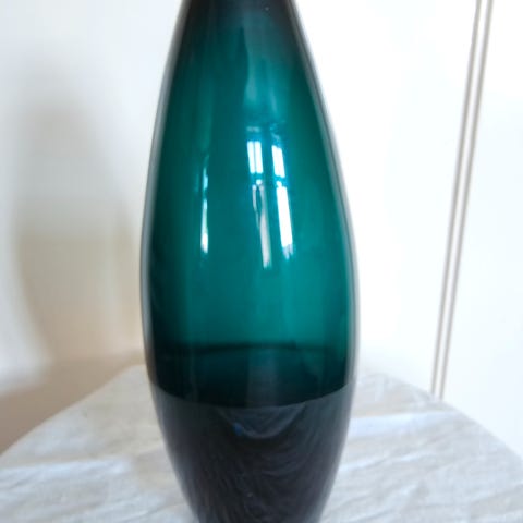 Smuk grøn Holmegårdsvase, 40 cm. høj. Greenland Torpedo Mrk. Holmegård 1961.