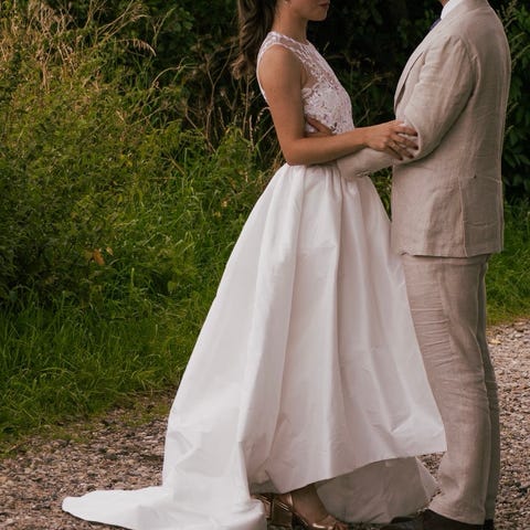 Flot brudekjole. Toppen er fra Lasse Spangenberg, Copenhagen mens bunden er fra Caza Lezar