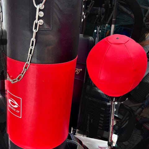 Min dreng sælges sit bokseudstyr, der stor set ikke er brugt. Har hængt i hans værelse. Medfølger: 2 sæt boksehandsker, armtræner til armbøjninger, boldtræner for hurtighed. Loftophæng kan også medfølge. Nypris for det hele 1.200,- kr. Sælges samlet til 550,- kr.