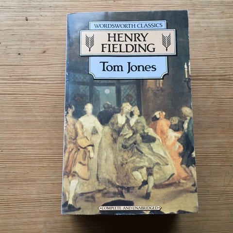 Hittebarnet Tom Jones bliver efterladt hos en adelig familie, som opfostrer ham, som var han deres egen søn. Her vokser han op til at blive en godhjertet og ærlig ung mand, som dog har svært ved at afholde sig fra livets mange fristelser. Hans erotiske eskapader og andre udskejelser tvinger ham efterhånden til at drage væk fra familien, og her starter Toms søgen efter sit sande ophav.