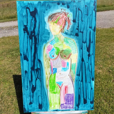 Akryl. 100 x 150 cm. Mahogniliste indramning