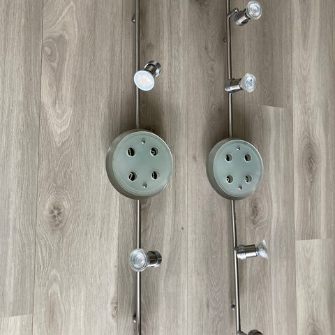 Loftsskinne børstet stål loft lampe m 3 spots nyp 600,-