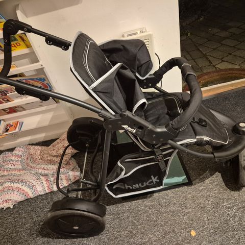 Klapvogn med plads til to børn. Brugt til 2 sæt børn, i rigtig god stand. Sædet kan ligges ned så barn kan sove. Opbevaringsplads under sæde og bag på vognen. Solskyggen kan køres næsten helt ned så barnet er helt beskyttet. Super nem at slå op og i. Kan også bruges til at køre baby helt til gate i fly hvis man ønsker. God kvalitet klapvogn