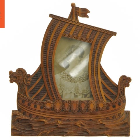 Vikingeskib på kobberplatte, Gl Kobber vægophæng med vikingeskib skib
