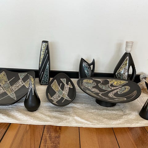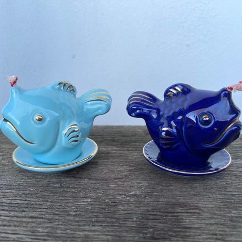 Kerakmiklamper fra Søholm - Haico Nitszhe. Et par af den lille model - renoveret med udskiftning af fatning og ledning. Brun ledning og fatning med afbryderknap. Kan sendes mod forudbetaling.