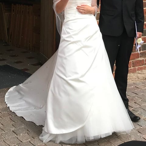 Fantastisk smuk brudekjole med tilhørende 4 lags tyl underskørt som puffer den op og giver et rigtig prinsselook.