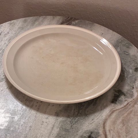 Aluminia, Ældre ovalt fad med enkelte små brune mærker.