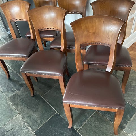 6 stk spisebordsstole sælges samlet i modellen Henriksdal med vaskbar betræk. Stolene fremstår brugte men i rigtig god stand. Enkelte af betrækkene trænger til en opdatering. Selve stellet er hvidmalet massiv bøg, og stolene har høj ryg.