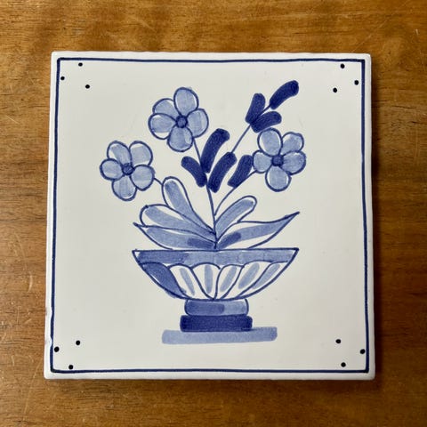 Lille fin Aluminia kakkel eller flise. Ingen afslag. Måler 7,5 x 7,5 cm