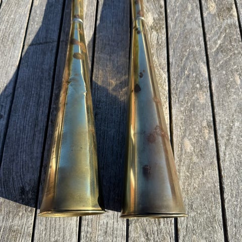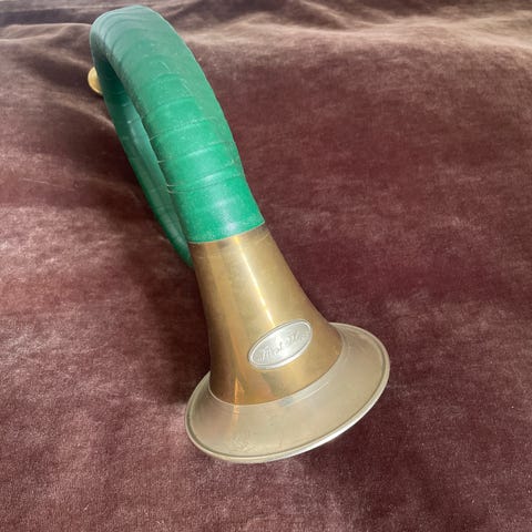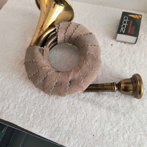 Spiller alle de fem toner, som et jagthorn har.. Med etui.