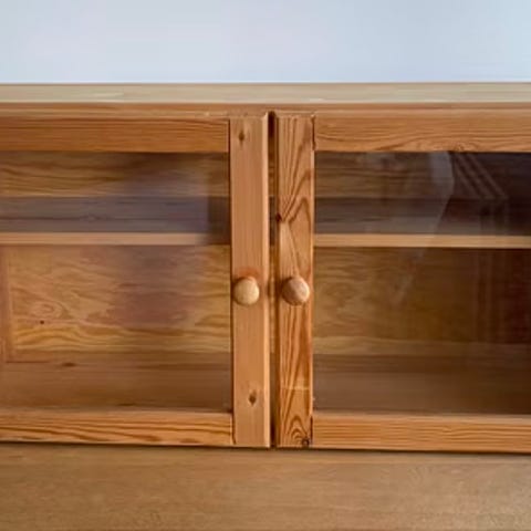 Lille vitrine skab med glashylder og glas i låge. Brugt.