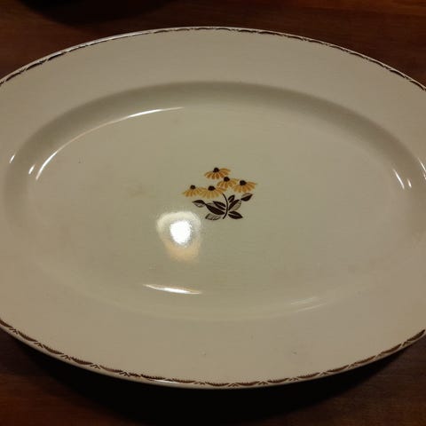 Fajance, Serveringsfad Birthe, Aluminia Birthe, Ovalt fad. 32,5 cm langt. 23,5 cm bredt. Design Nils Thorsson. Vejer 746 gram.
