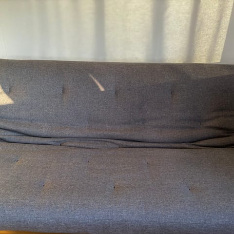 NY PRIS :Sælger denne velholdte "Innovation" sovesofa / seng der har stået ubrugt på gæsteværelse i nogle år. Det er en grå metalramme der kan reguleres i rygindstillinger eller klappes ud som seng. Det er en vendbar bomuldsmadras - lysegrå og sort. Nedenunder er der plads til sengetøj. Innovation er dansk produceret og i solid kvalitet. Den har stået i hjem uden røg eller dyr ... Udslået kan der ligge 2 personer i sengen.
