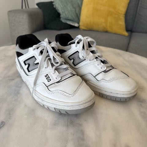 Skoene er brugt få gang og ser næsten ud som nye men har stedet på nettet hvor der er skidt der ikke rigtig gider og komme af, der er stort set inde skid på under sålerne skoene ser næsten ud som nye og har ud over lidt jord næsten igen tegn på brug