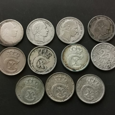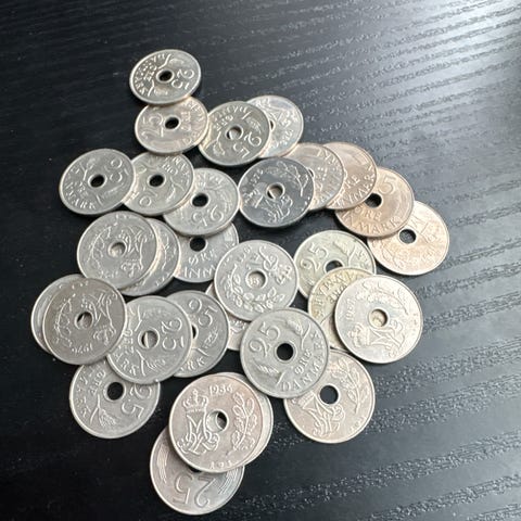25-øre, 22 stk danske, cirkulerede