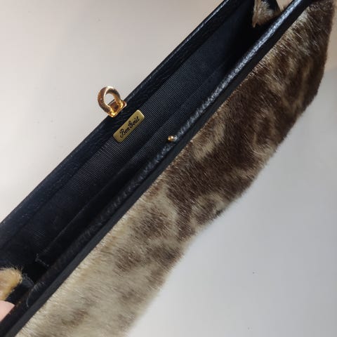 Clutch, Bon Gout, Taske fra 1990’erne. Farven er svær at fange en mellemting af det første og sidste billed. Ruskind