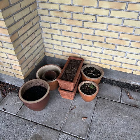 Vintage 4 stk. krukker i beige nuancer /har stået ude sommer /vinter