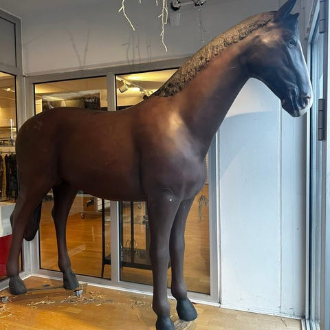 Stor Schleich pakke, med stald, 30 heste, 15 føl, 8 ryttere, 2 undervisere, 4 træktorve, 2 til føl og 2 til voksne, 7 dækken, 13 brune hegn, 15 hvide hegn, 9 sadler, 6 hovedtøj, 2 dyrlæger og 23 gård dyr (hunde, katte, gris, høns mm :) fejler intet. Der er klistermærker på stalden. Bilen med trailer kører som normalt. Skriv endelig hvis der er nogle spørgsmål. Sælges kun sammen. Kan hentes i Ejby ved Køge eller på Amager ved lufthavnen :)
