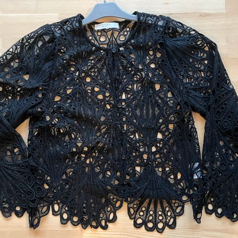 Ærmer ca halv længde af normalt. Lang i kroppen.