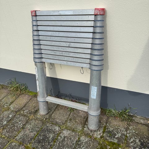 Teleskopstige 2.70 m. Kan trækkes ud til det dobbelte. 40 cm bred.