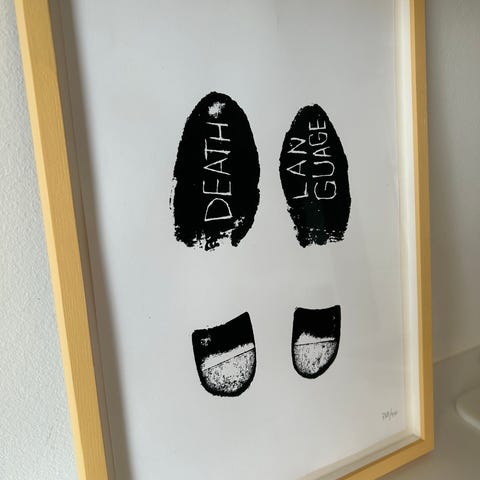 Grafik, Lina Viste Grønli, b: 29,7 h: 42, Silketryk fra læderskosål, 2021