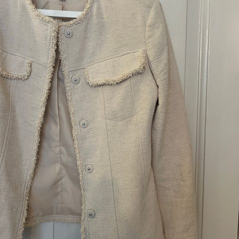 Flot blazerjakke i varm beige, stof i viskoseblanding.