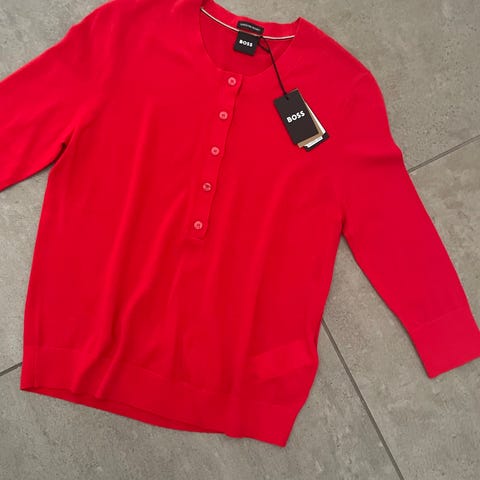 Smuk strik/hæklet vest fra Hugo Boss. Rigtig god stand. Brugt få gange.
