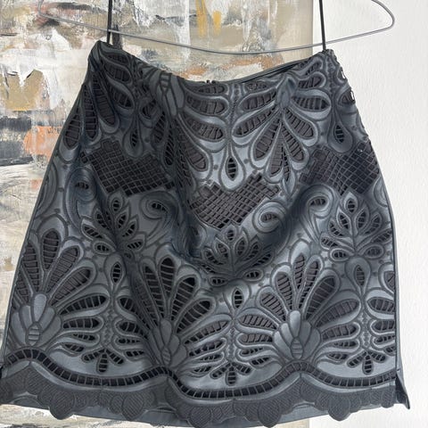 Sort nederdel i læderlook fra Vila i størrelse xs. Har lidt tegn på slid, som bl.a. også vises på billedet til sidst.