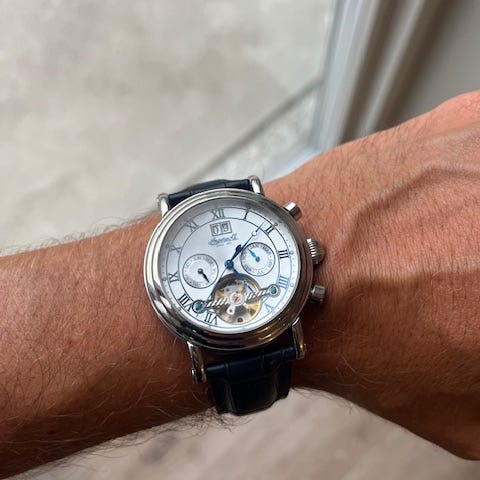 Dette ur er et Limited Edition og er blevet brugt meget få gange. Lækkert mekanisk ur der selv trækker så op når man bruger det. Den lækre sorte læder rem i Genuine Leather skiller sig ud sammen med den store urskive og de dominante tal.