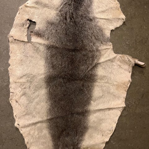 Rensdyrskind købt i Nuuk. Ca. 120 x 100 cm, længste og bredeste steder.