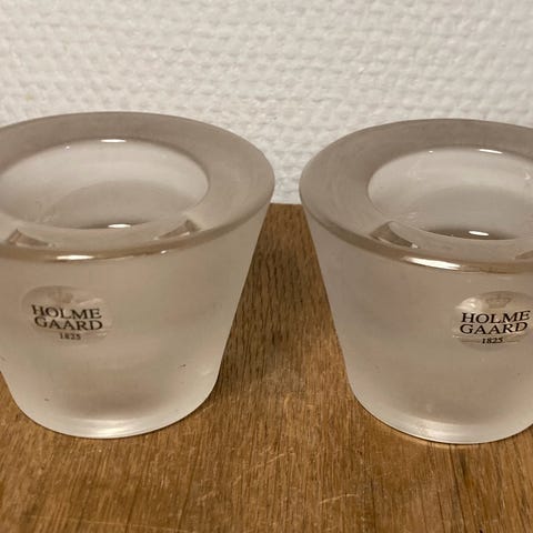 Anderledes vendestage far Holmegaard. Når du vender den som på billedet kan du bruge den som vase – og omvandt til et almindeligt lys. Den fremstår i flot og hel stand i klart glas. Jeg sender gerne godt indpakket mod betaling af porto kr. 50.