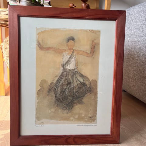 Elegant og minimalistisk kunstplakat med det ikoniske værk Dancing Figure af den berømte franske billedhugger Auguste Rodin. Motivet er et yndefuldt, lettegnet danserstudie i varme toner – både kunstnerisk og stilrent.