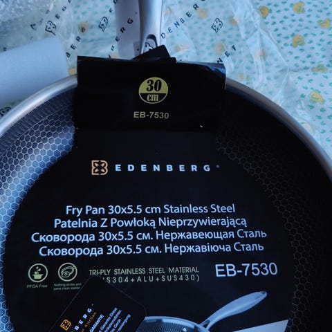 Selve pande 17,5 cm i diameter, ca. 35 cm lang med håndtag.