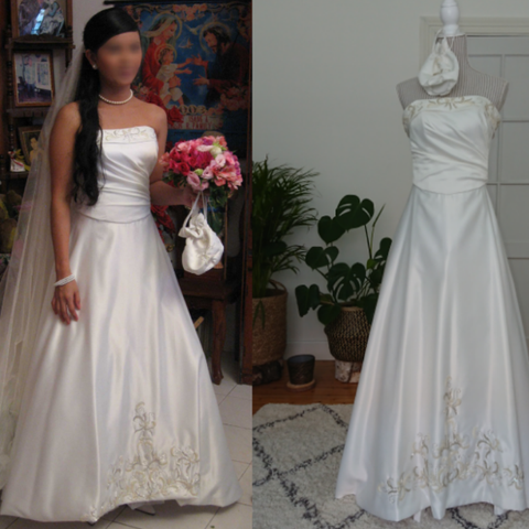 Off shoulder brudekjole i satin