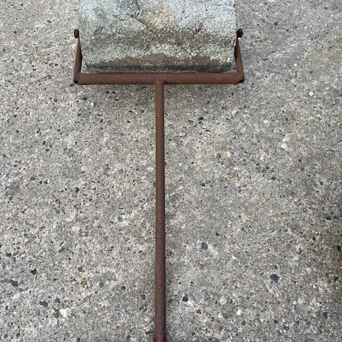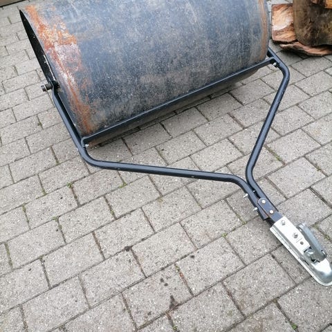 Har været brugt til at tromle græsplænen.